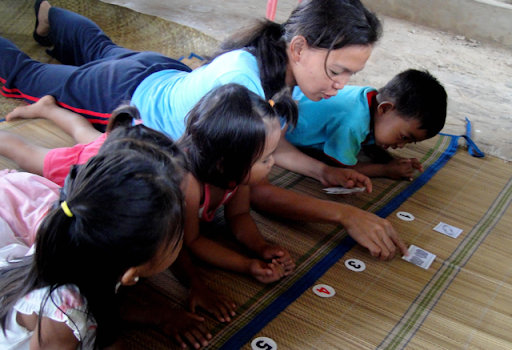 Teaching vowels.pngThe children were silent as we teachers climbed behind the cover of a white sheet hanging at the front of the classroom. A moment later, the hand puppets Koala Bear, Crocodile, Sheep, Cat, Panda and Owl and Maya Bird appeared, and the story began. By the middle of our show, we started wondering if the students had all left because the room was so quiet! I peeked around the cover to make sure that they were still there. To my surprise, all the students were all in their seats, listening attentively to the various voices of the characters in front of them. They were watching every move of each puppet as if nothing else in the world existed. I happened to witness their awe and how engaged they were and I will always remember the happiness painted on their faces.